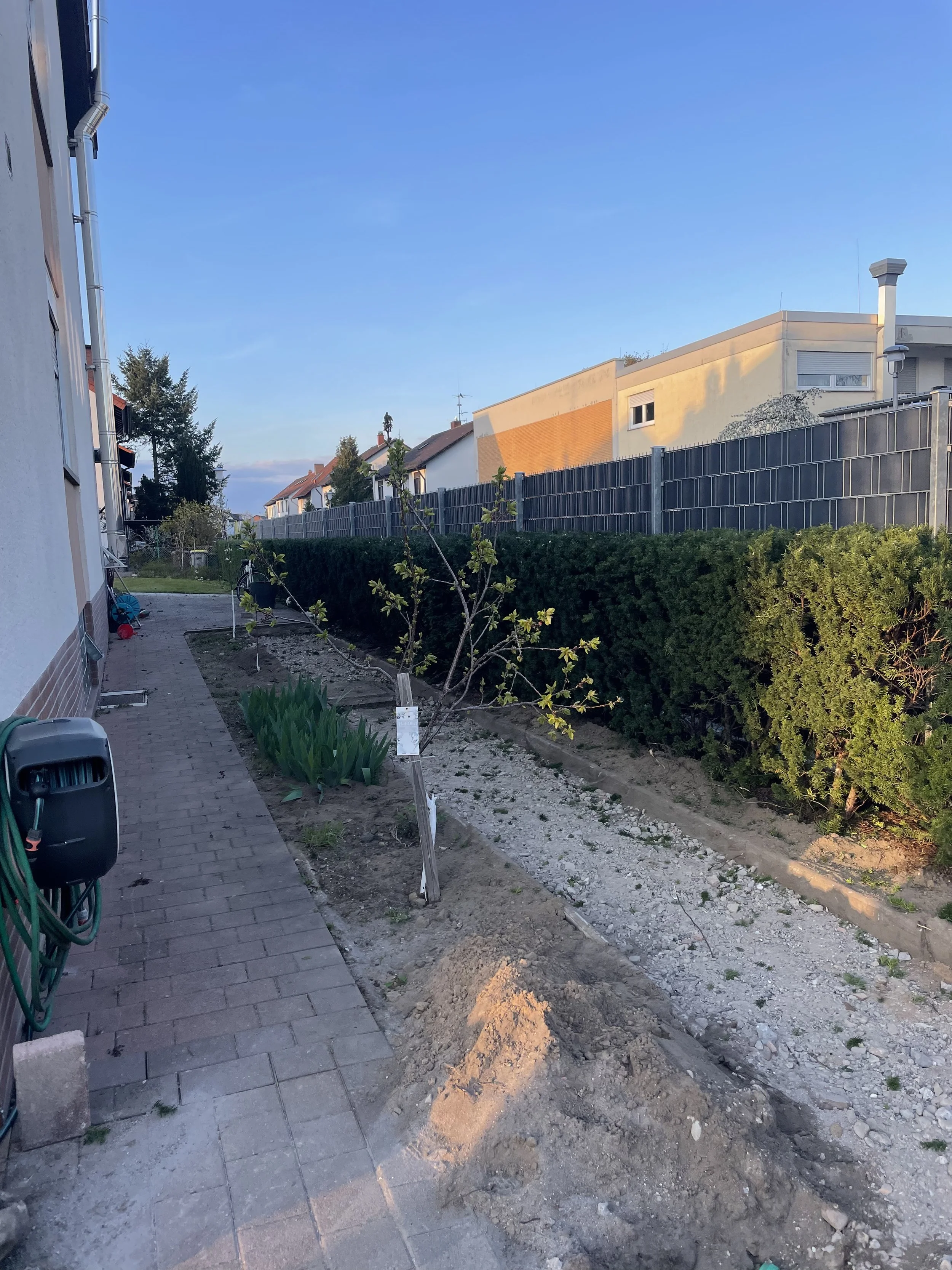 Der Kunde wünschte sich eine pflegeleichtere und besser kontrollierbare Hecke. Die Eibe eignet sich ideal für einen starken Rückschnitt, da sie sehr gut wieder austreibt.