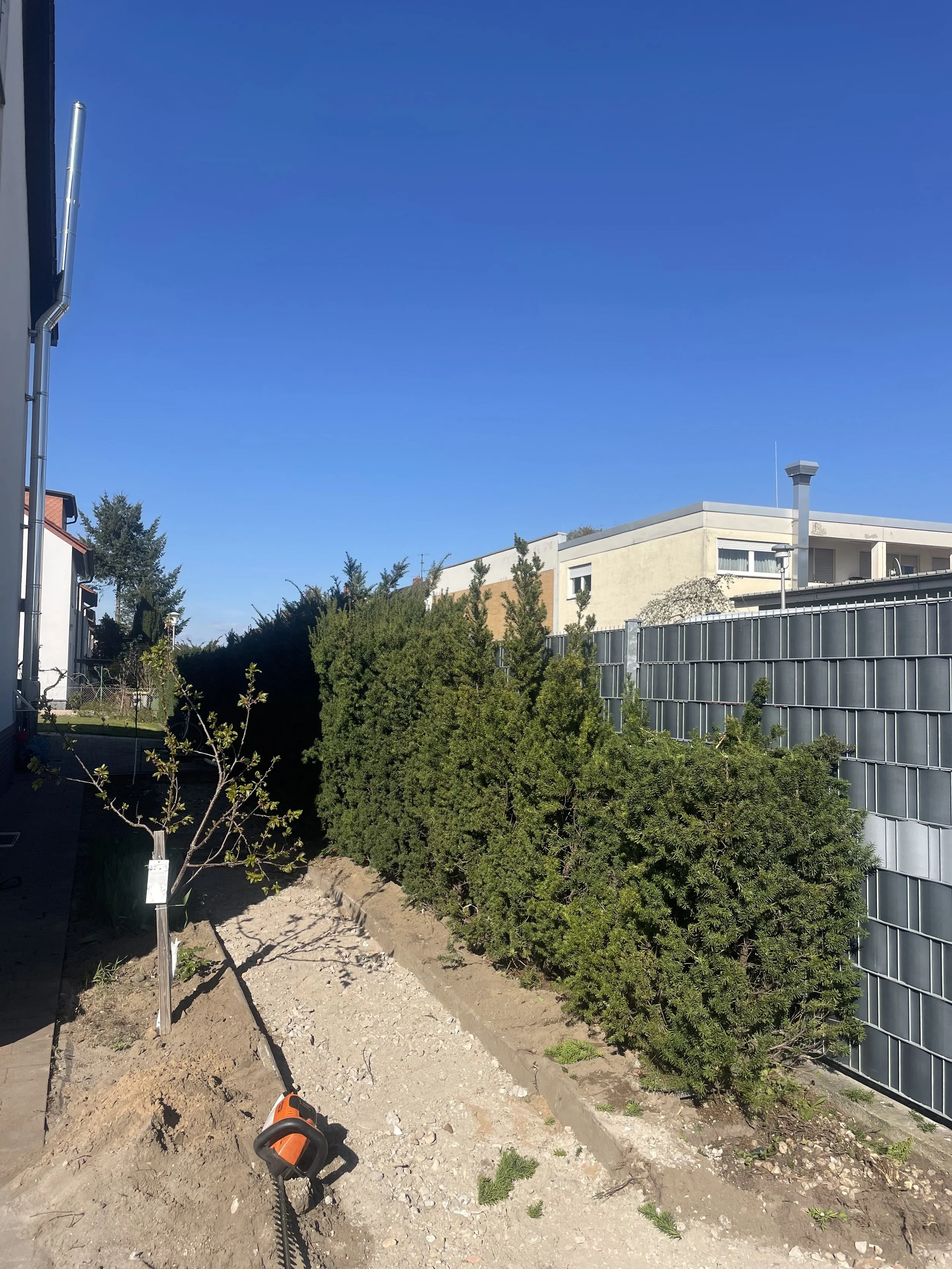 Heckenschnitt in Mannheim – Taxushecke stark zurückgeschnitten: